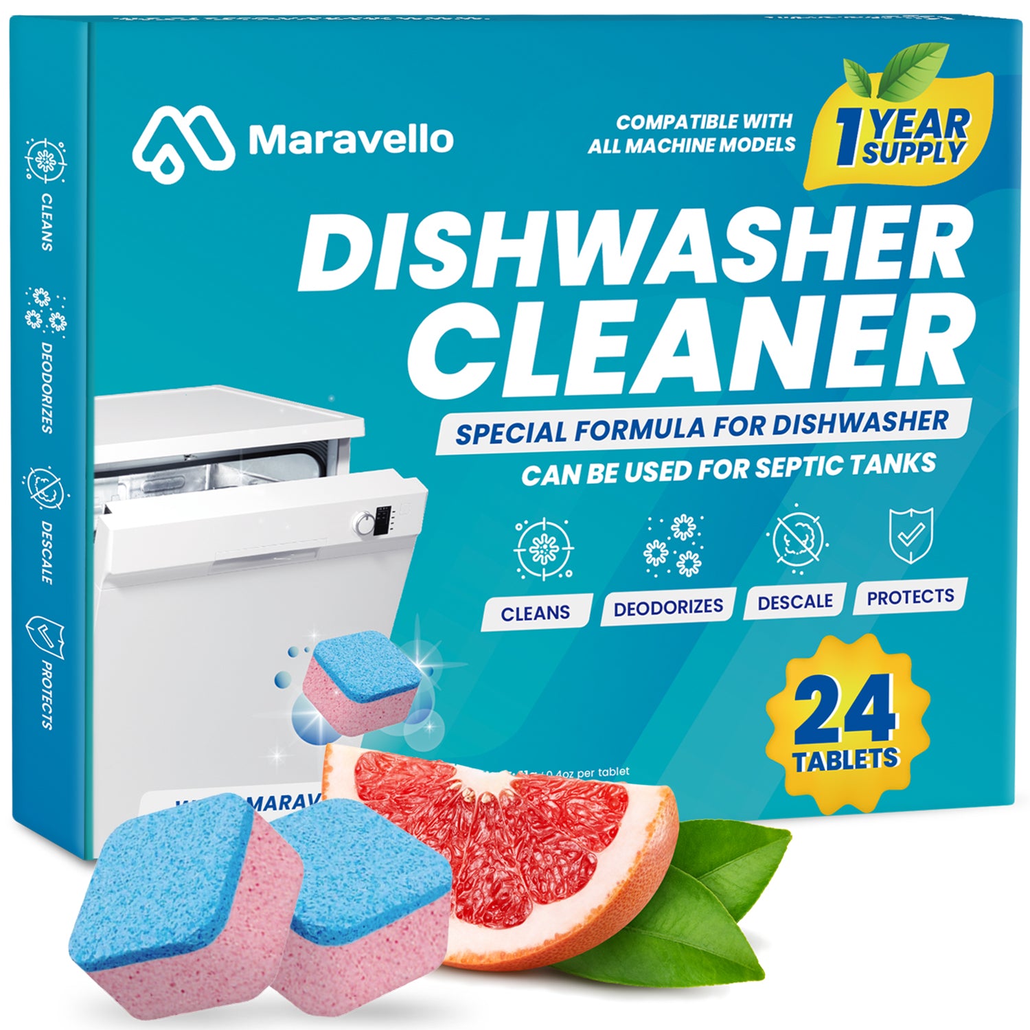 Break down years of accumulated buildup in your dishwashing machine with the breakthrough technology found in Maravello dish washer cleaner ! Formulated with active ingredients including citric acid, this dishwasher cleaner and descaler intensively works to remove grime, limescale, and an odor that’s been trapped inside your dishwasher machine.
