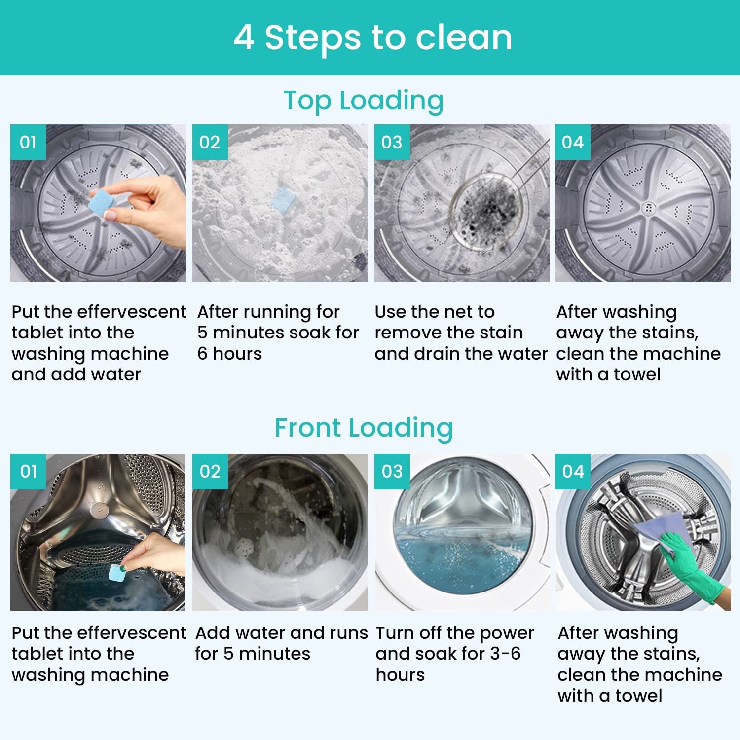 - 24件洗衣机片:只需购买一次即可享受长达一年的洗衣机清洁片供应。额外提供 4 件作为礼物,因此您的清洁计划不会受到影响。
